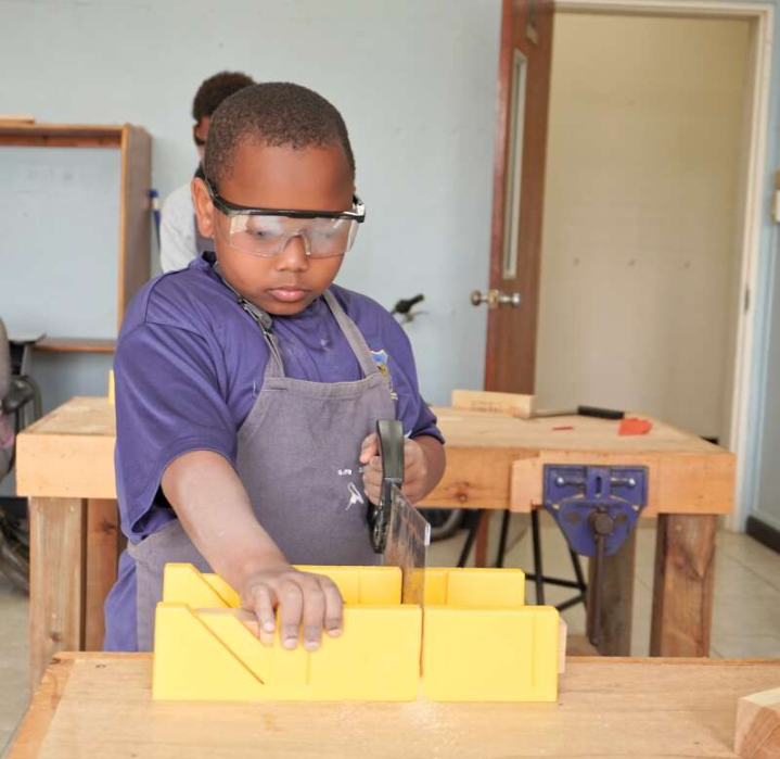 “Imagine there is air underneath the saw,” the retired Bermuda College professor advised. The boys listened intently, then returned to their workstations, this time achieving smoother, more controlled cuts.